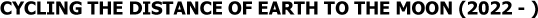 "Beginning on 05/15/22 I set the intention I will attempt to cycle the distance of earth to the moon using a stationary exercise bike during the remaining years of my life. With the moon being roughly 238,900 miles away from Earth, I calculated that if I’d cycle 60 miles a week for the next 76.3 years I would have completed my cycle to the moon by the year 2098 when I turn 113 years old. After doing this calculation it seems pretty far-fetched, but I believe that absolutely nothing in life is impossible. I often find it completely fascinating that the moon is so far away, yet also feels so close..." - Brandon Locher