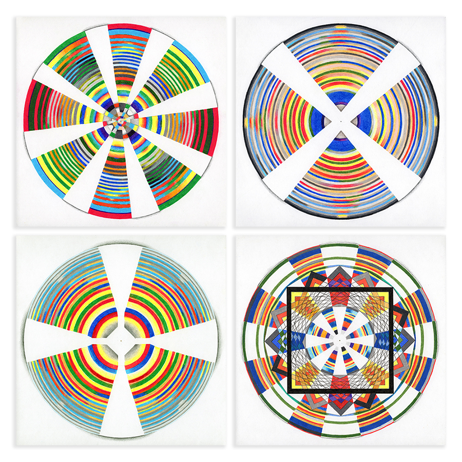 (left top) Assemblage Material no. 15.01, Graphite and Colored Pencil on Paper, 8" x 8", 2024
