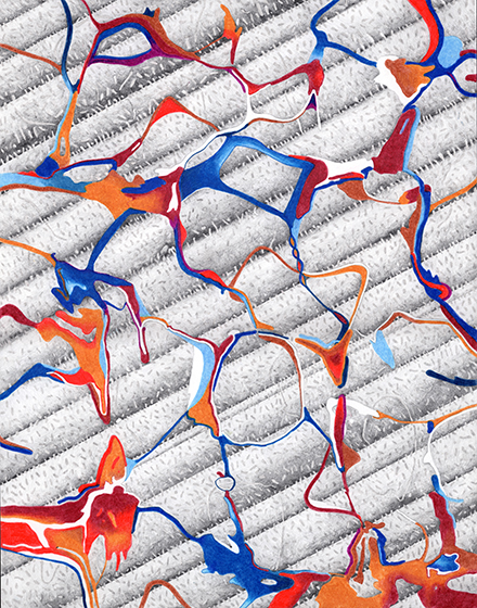 | Assemblage Material no. 1, Ink and Colored Pencil on Paper, 11" x 11", 2022 |
