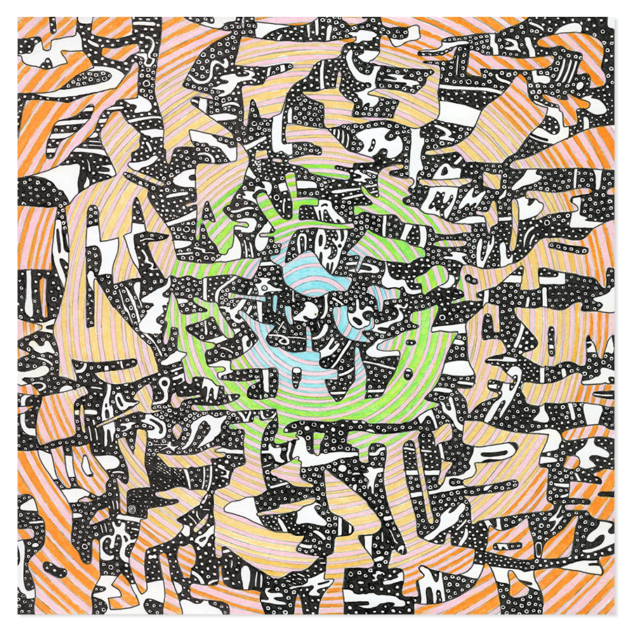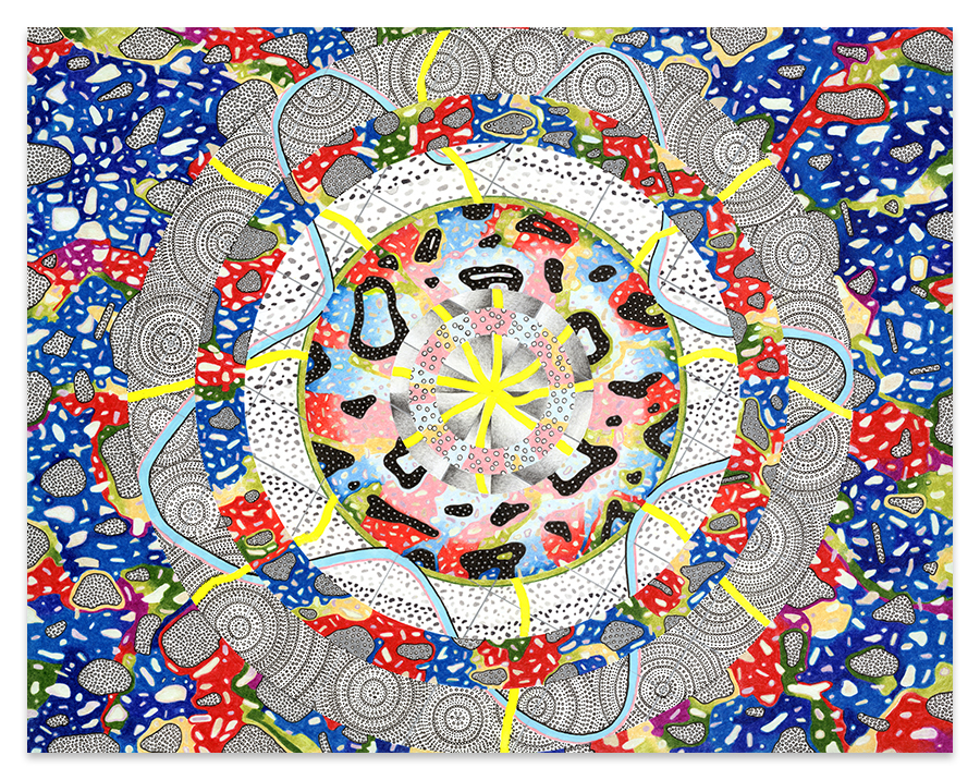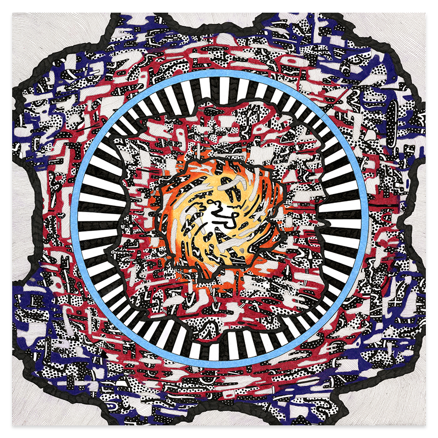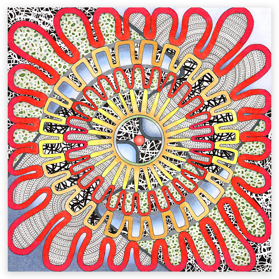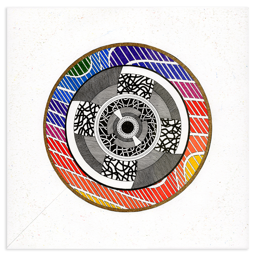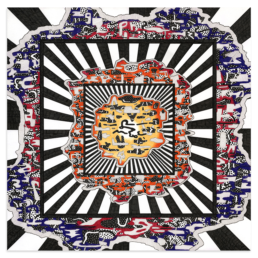 | Assemblage Material no. 1, Ink and Colored Pencil on Paper, 11" x 11", 2022 |