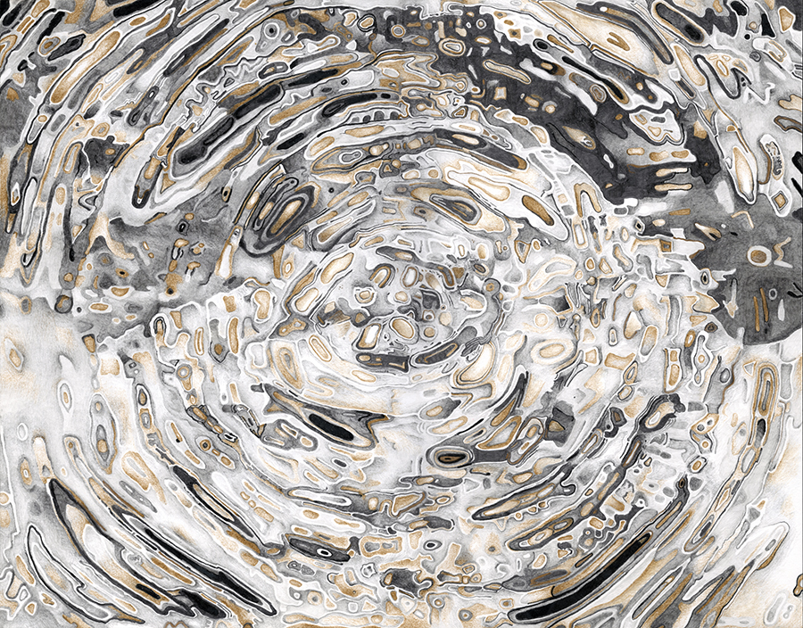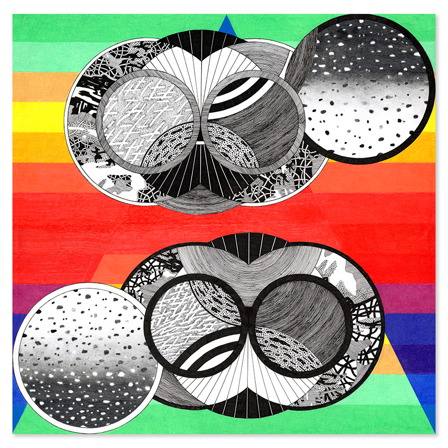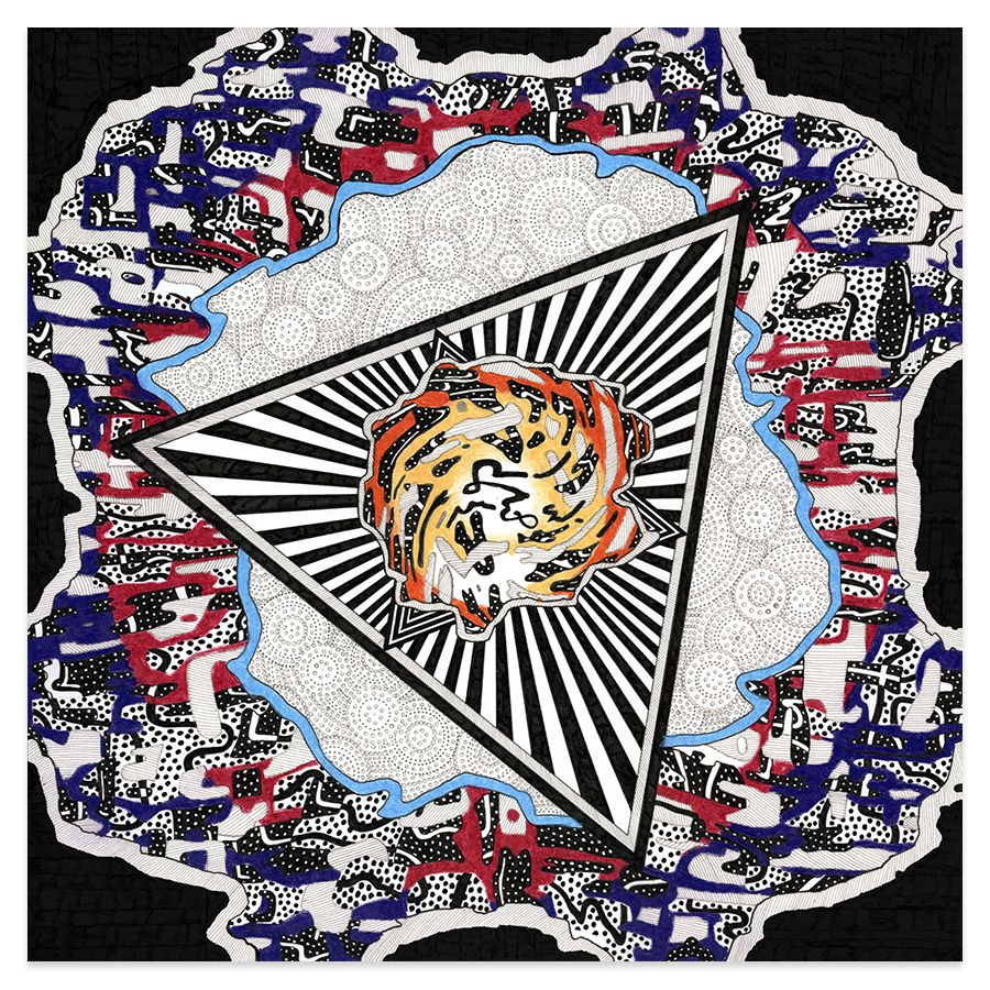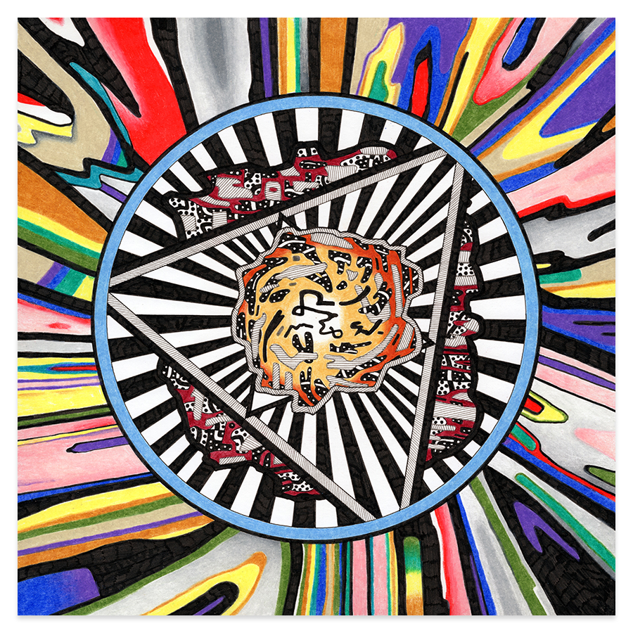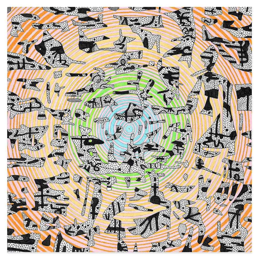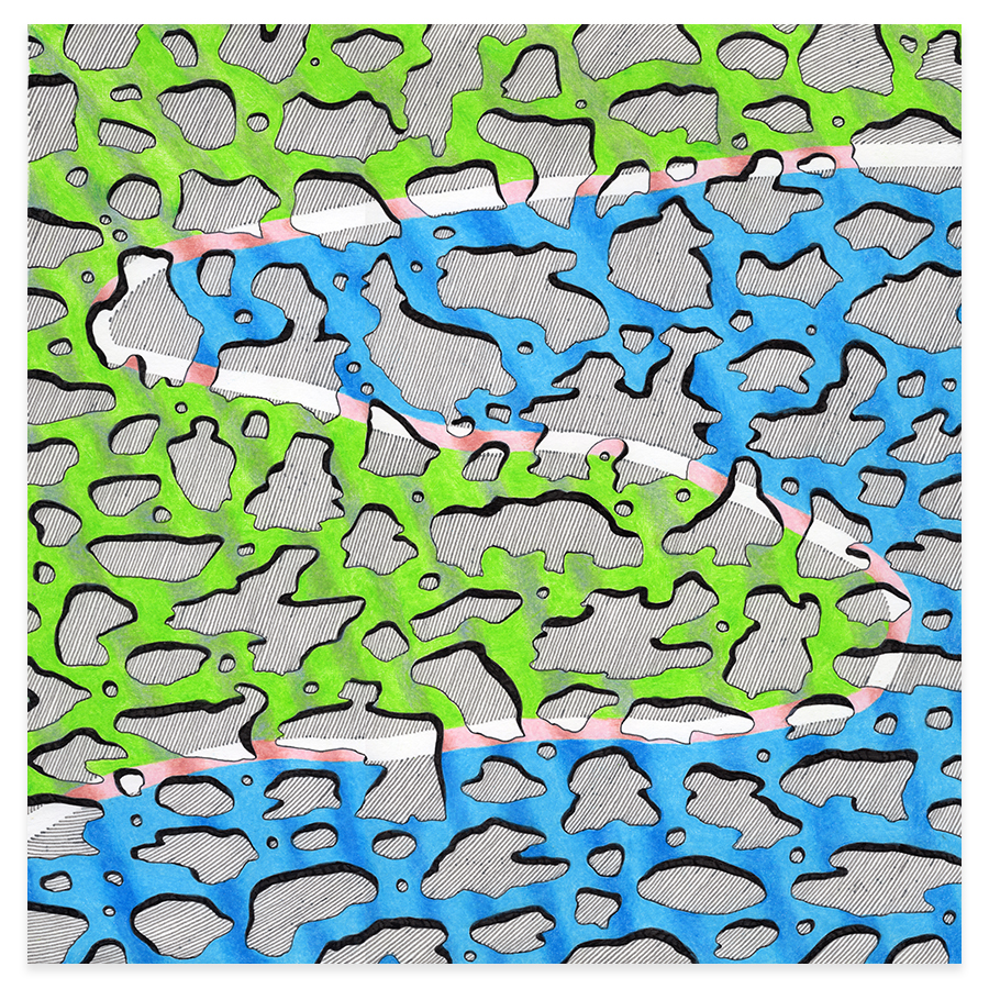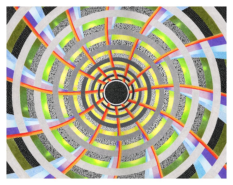 | Assemblage Material no. 1, Ink and Colored Pencil on Paper, 11" x 11", 2022 |
