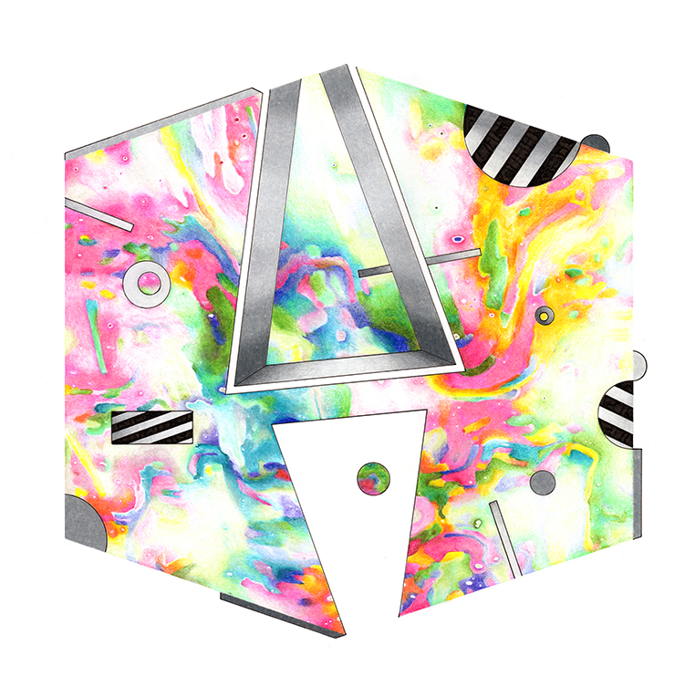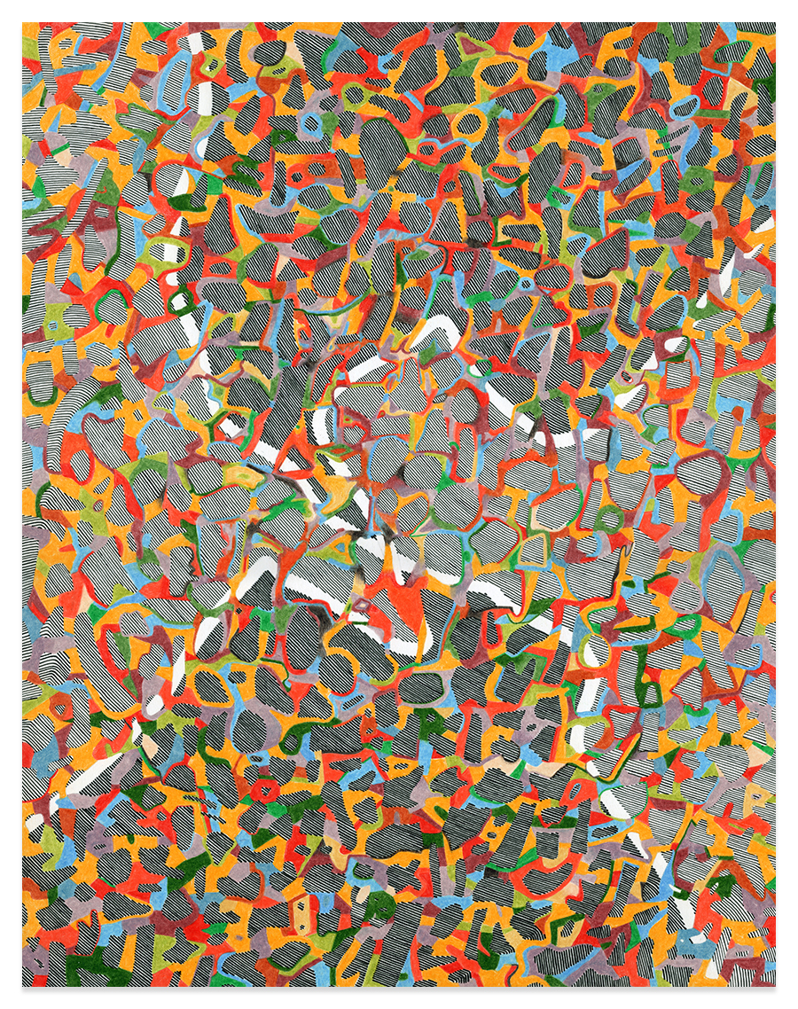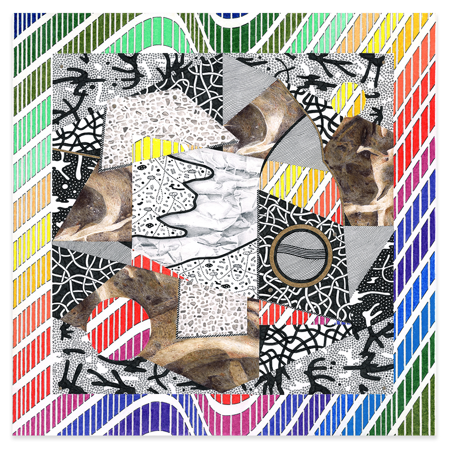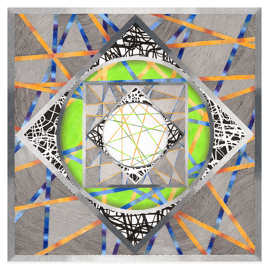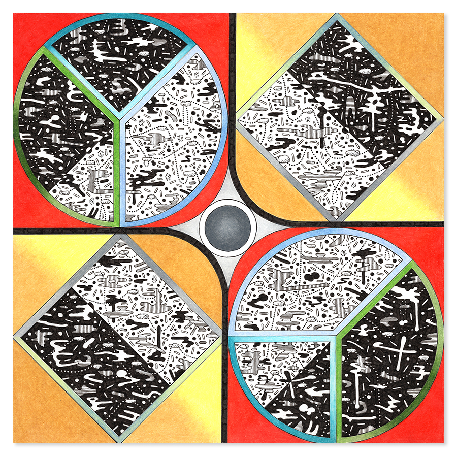 | Assemblage Material no. 4.02, Ink and Colored Pencil on Paper, 18" x 18", 2023 |