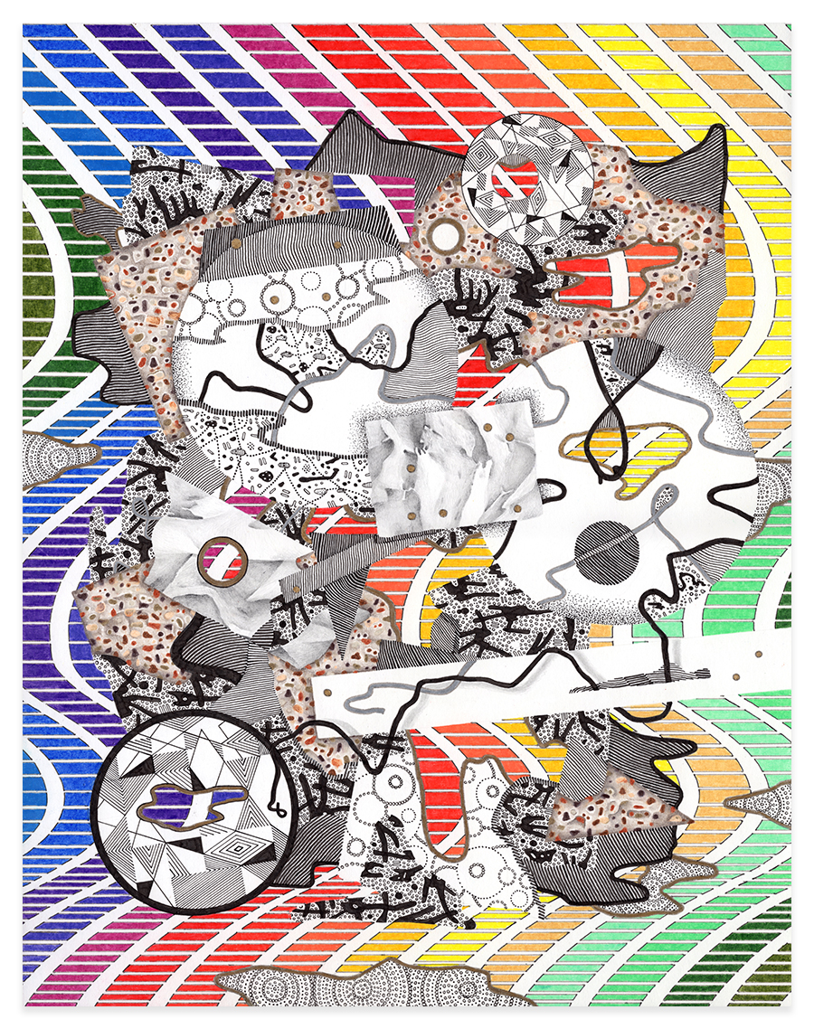 | Assemblage Material no. 5.201, Ink and Colored Pencil on Paper, 11" x 14", 2024 |