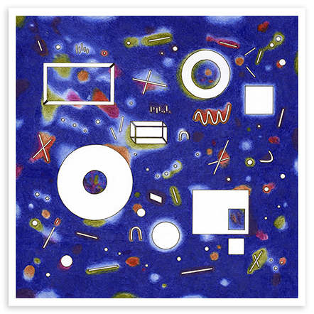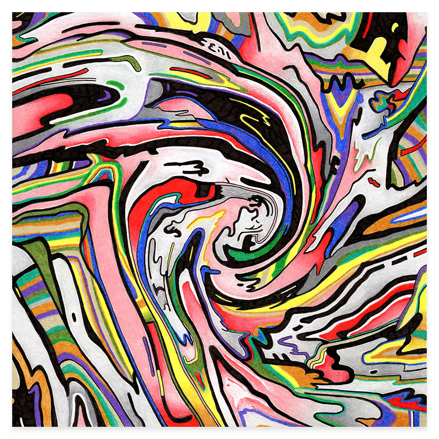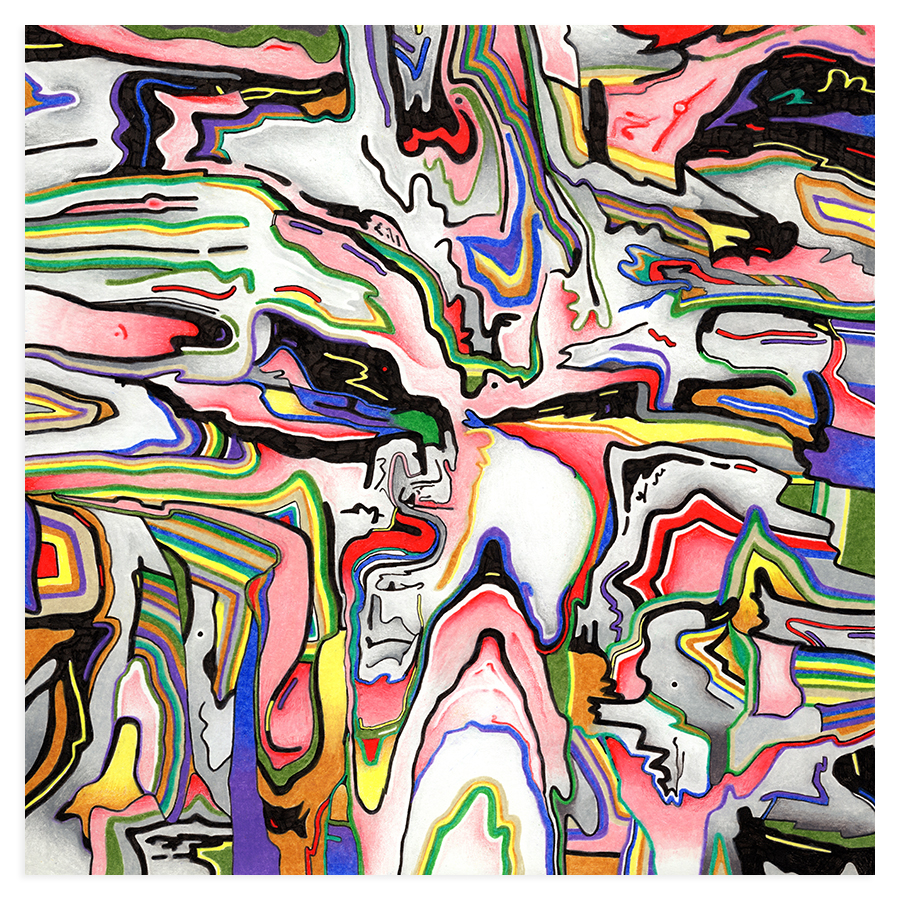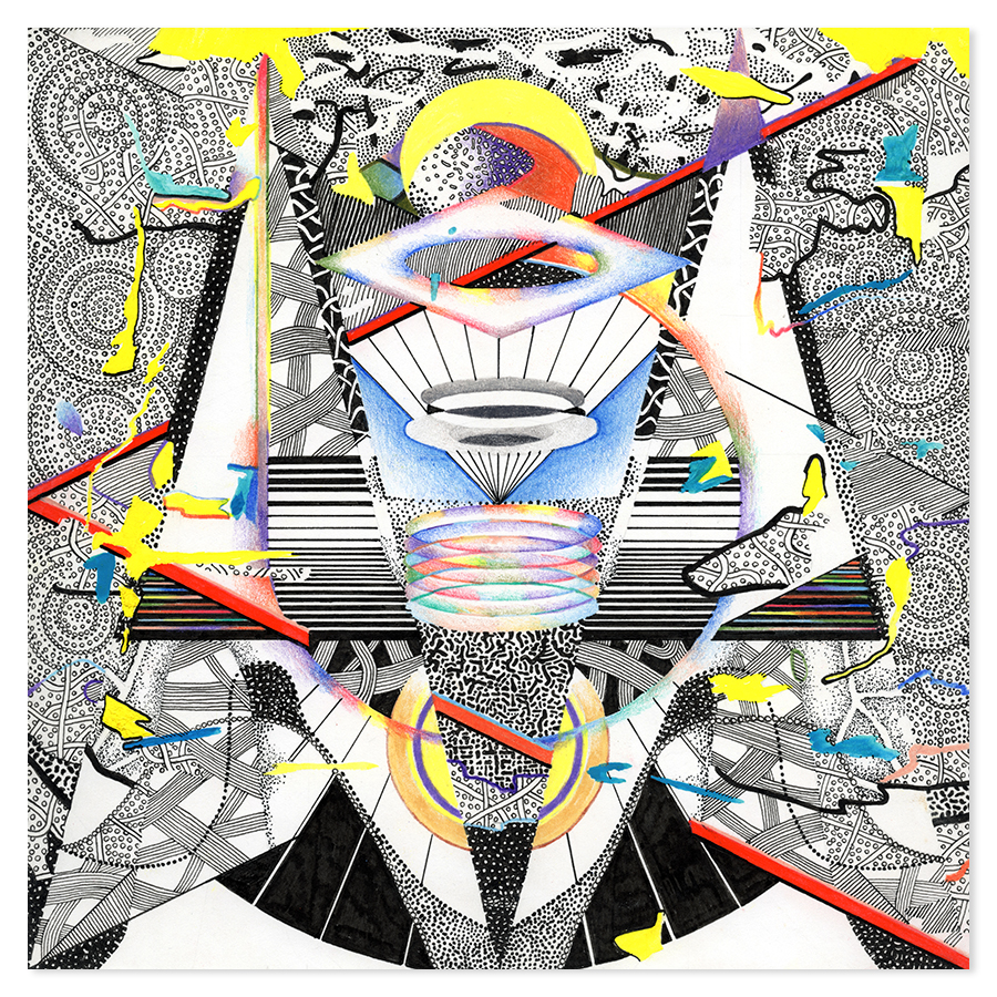 | Assemblage Material no. 7, Ink and Colored Pencil on Paper, 18" x 18", 2023 |
