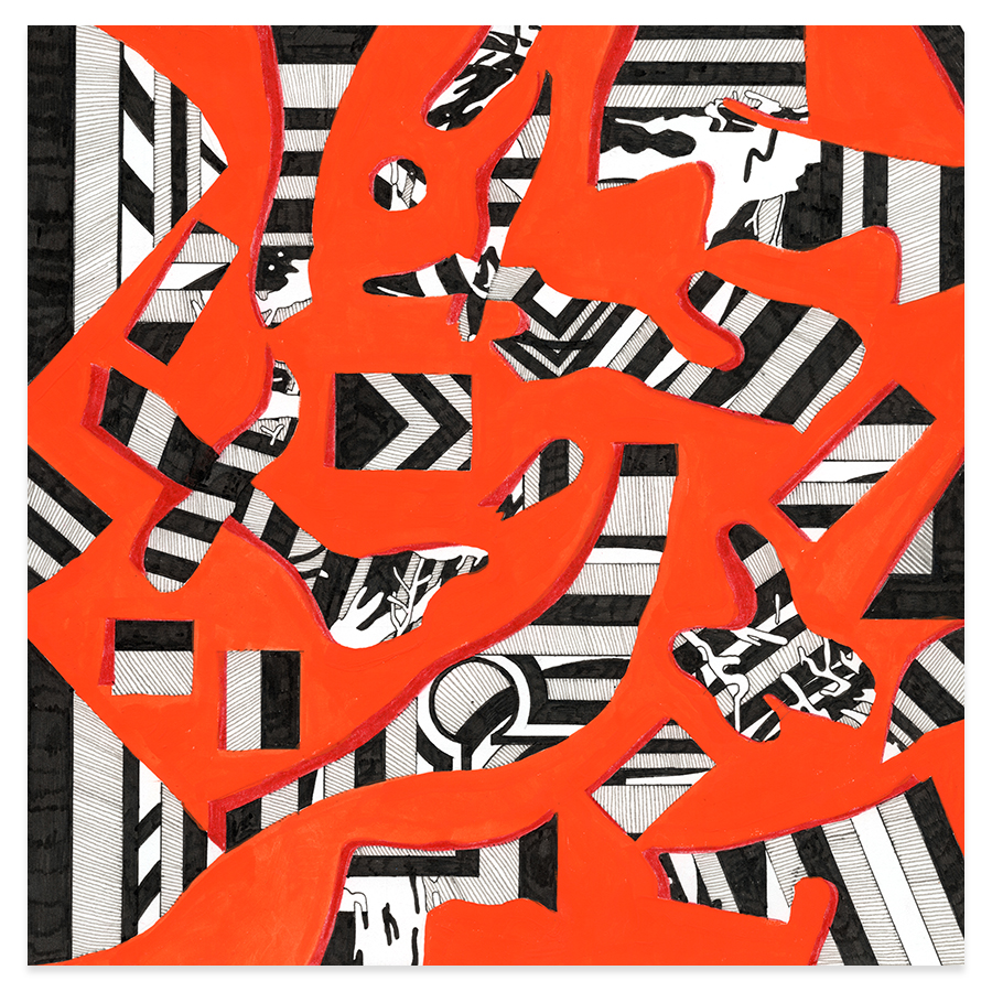 | Assemblage Material no. 20, Ink, Gouache, and Colored Pencil on Paper, 9" x 9", 2025 |