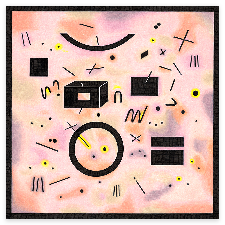 | Assemblage Material no. 6, Ink and Colored Pencil on Paper, 9" x 9", 2023 |