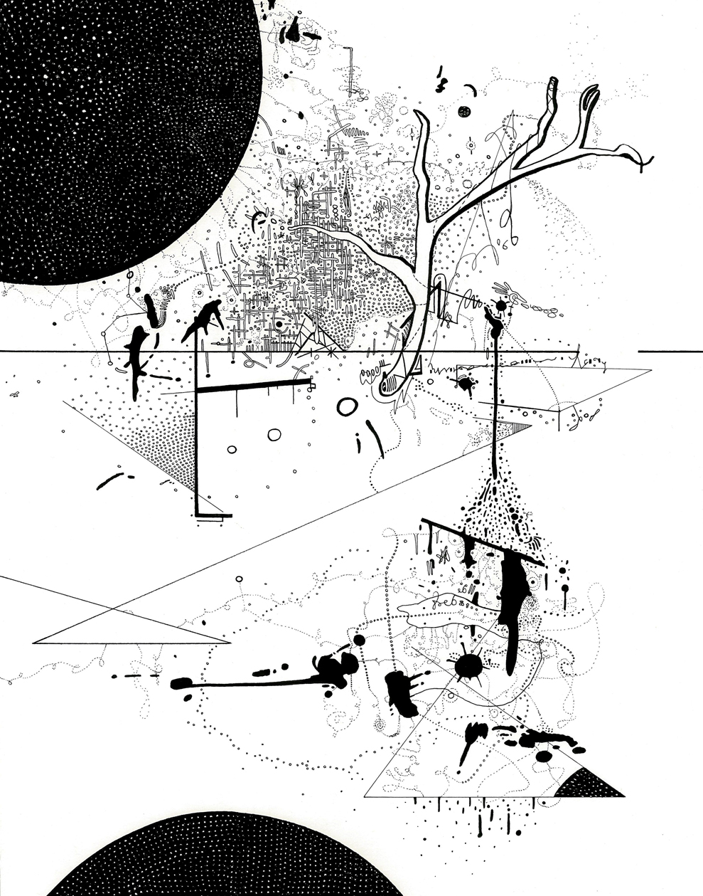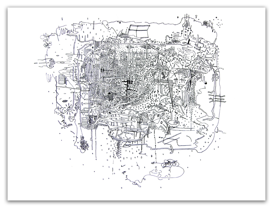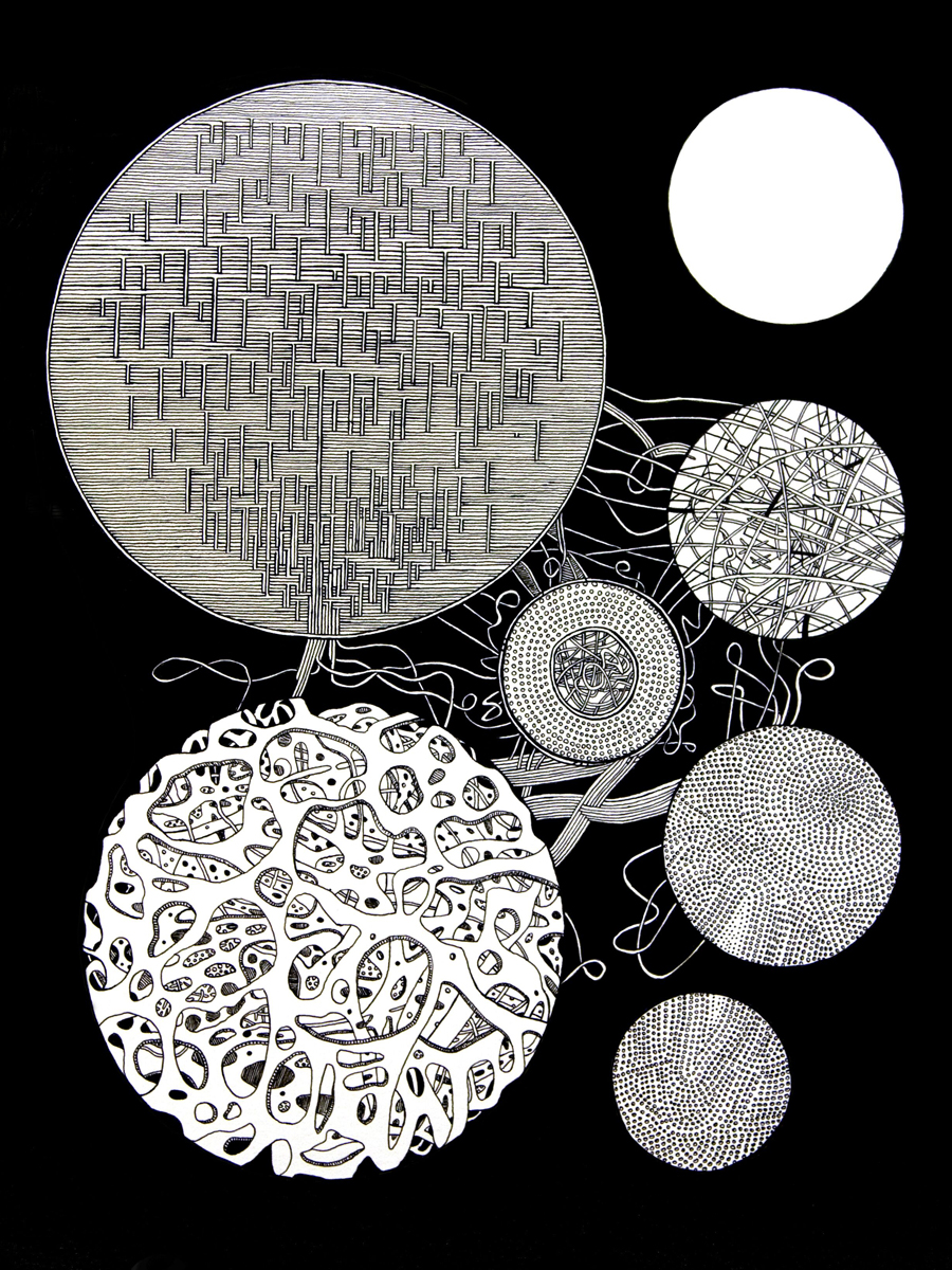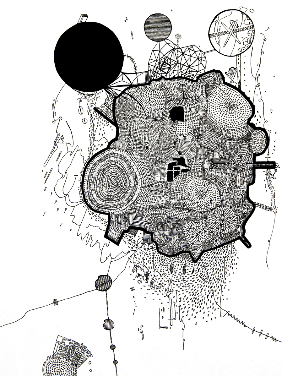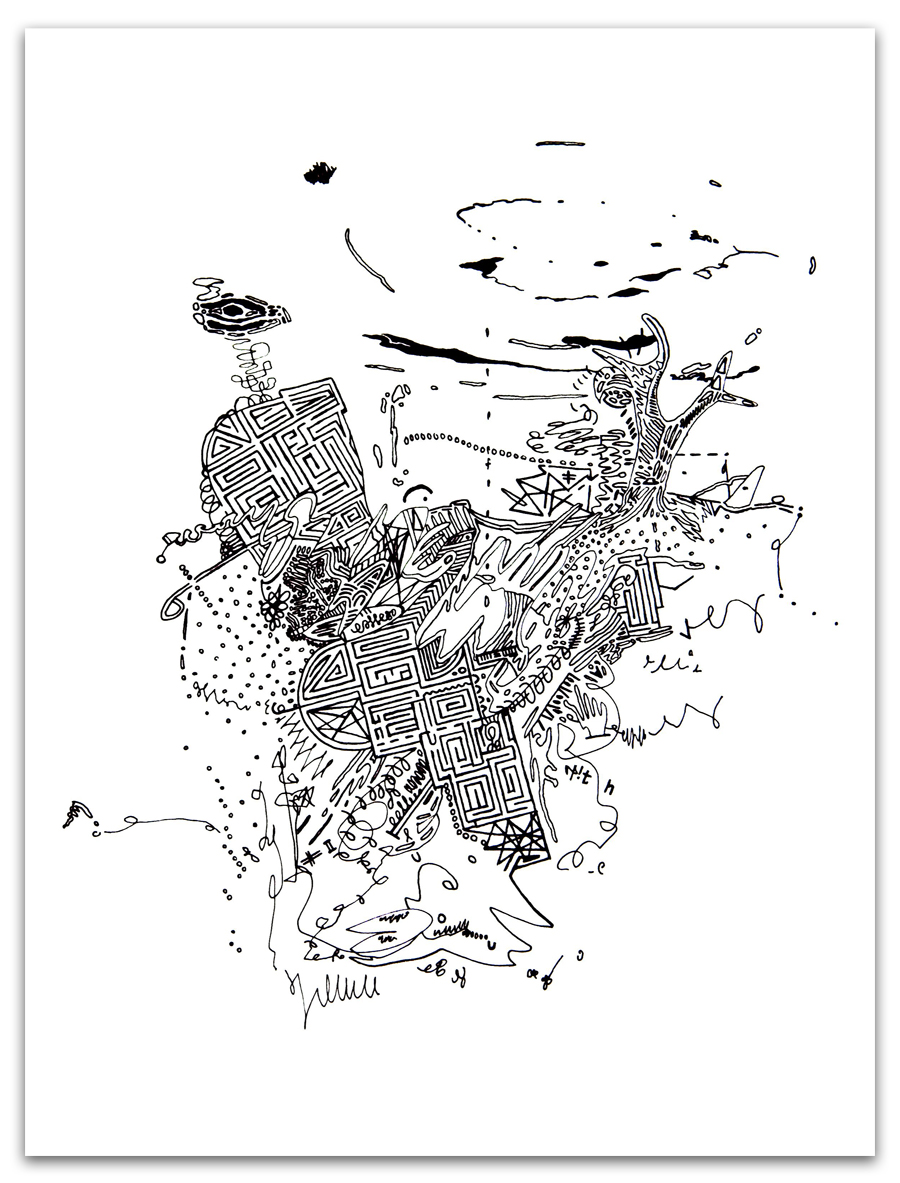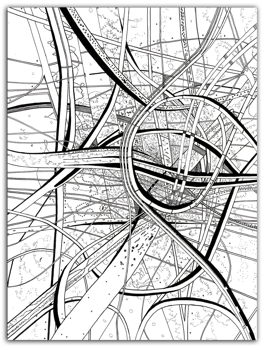 Mazes to the Motherlode II, Ink on Paper, 9" x 12", 2012 |