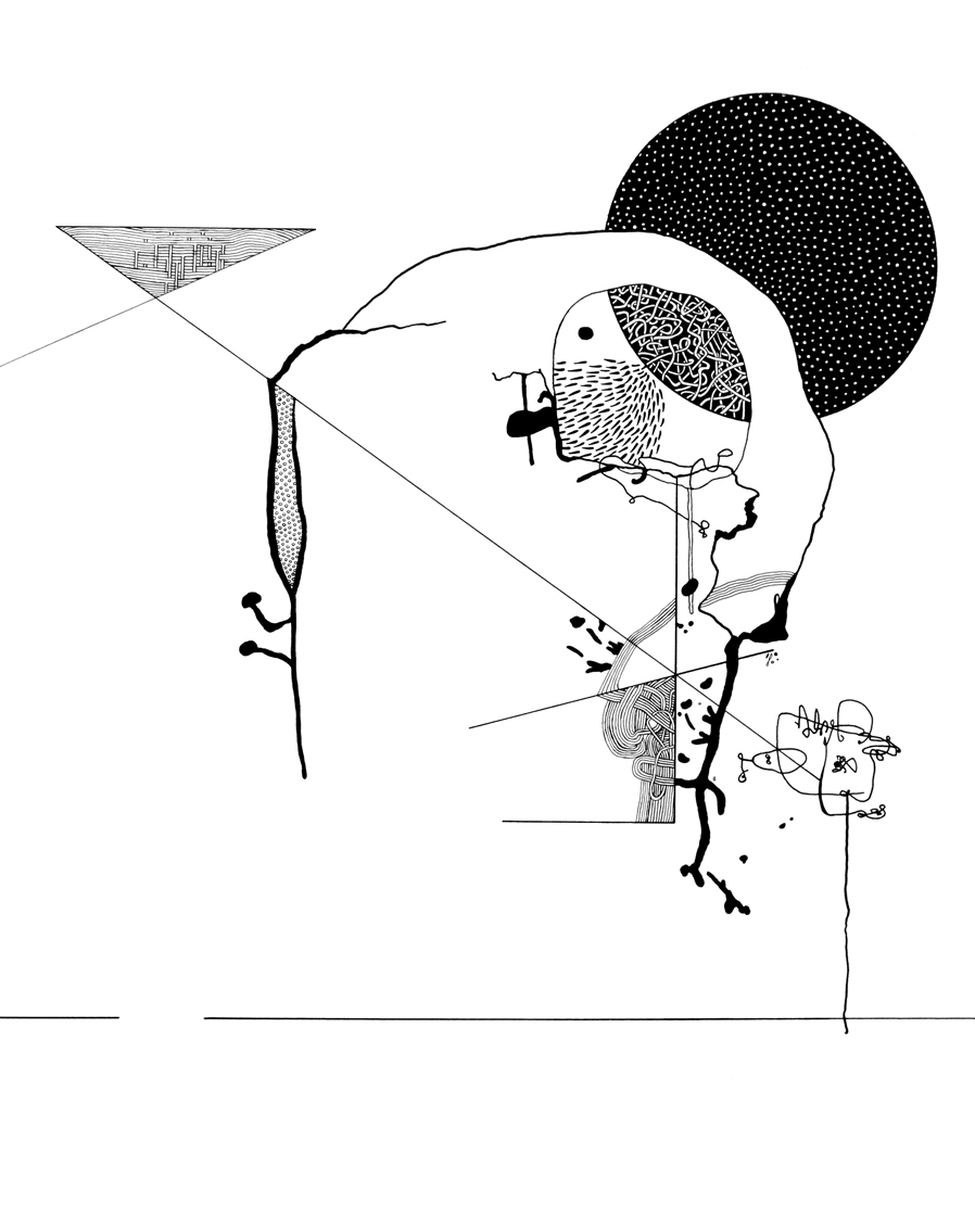 (right) Mazes to the Motherlode LXVIII, Ink on Paper, 14" x 17", 2015 |