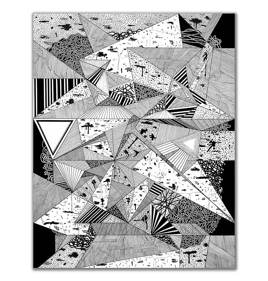 Mazes to the Motherlode XLIV, Ink on Paper, 19" x 24", 2015 |