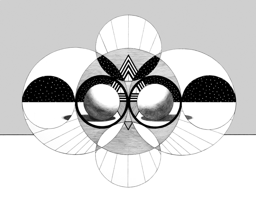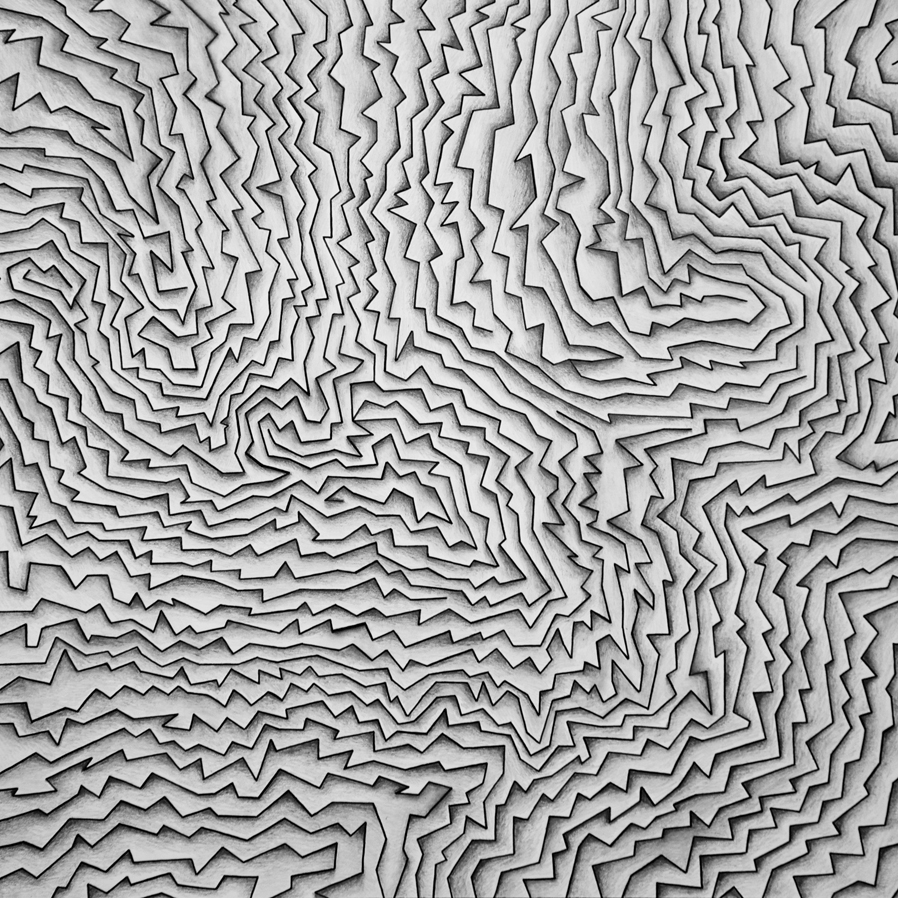 (top right) Mazes to the Motherlode XLVI-III, Graphite on Paper, 12" x 12", 2016