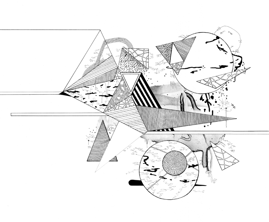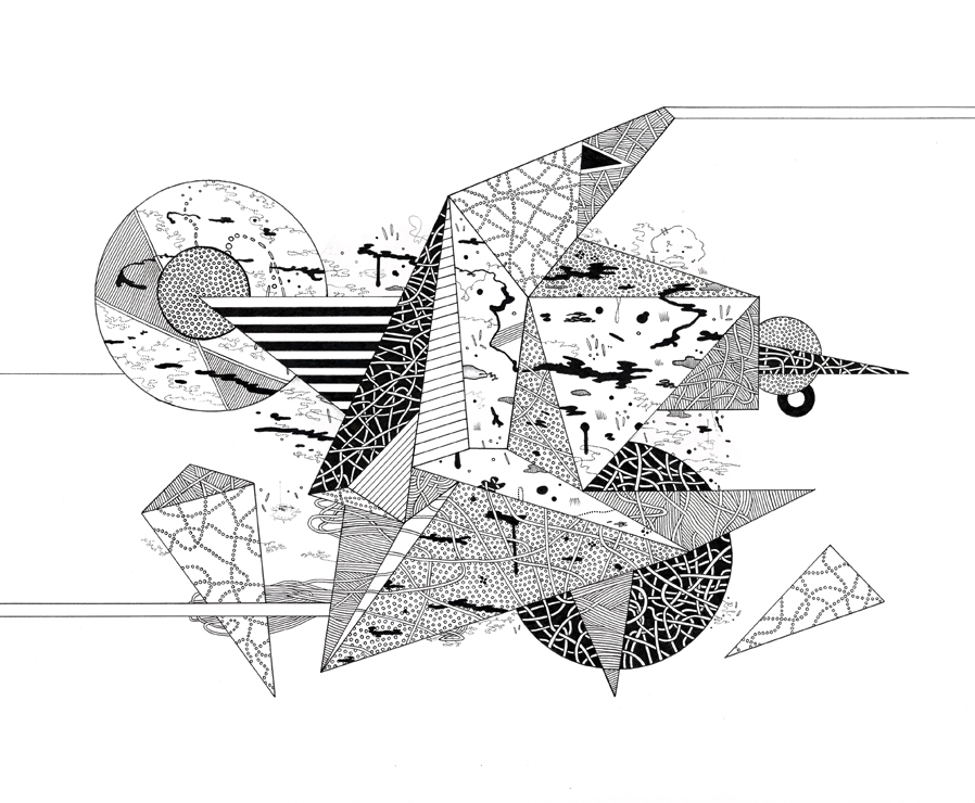 Mazes to the Motherlode LI, Ink and Graphite on Paper, 14" x 17", 2016 |
