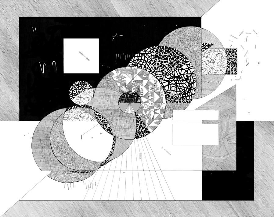 Mazes to the Motherlode LXV, Ink on Paper, 14" x 17", 2018