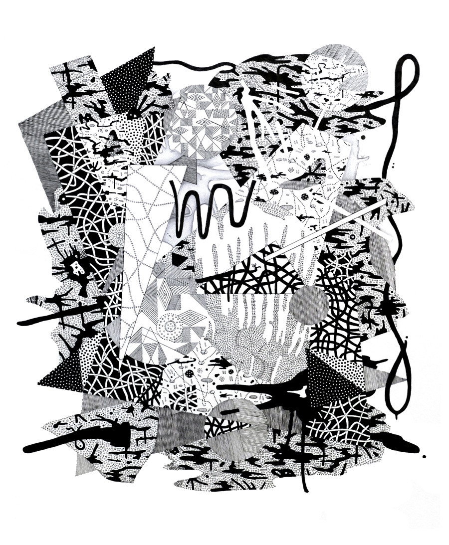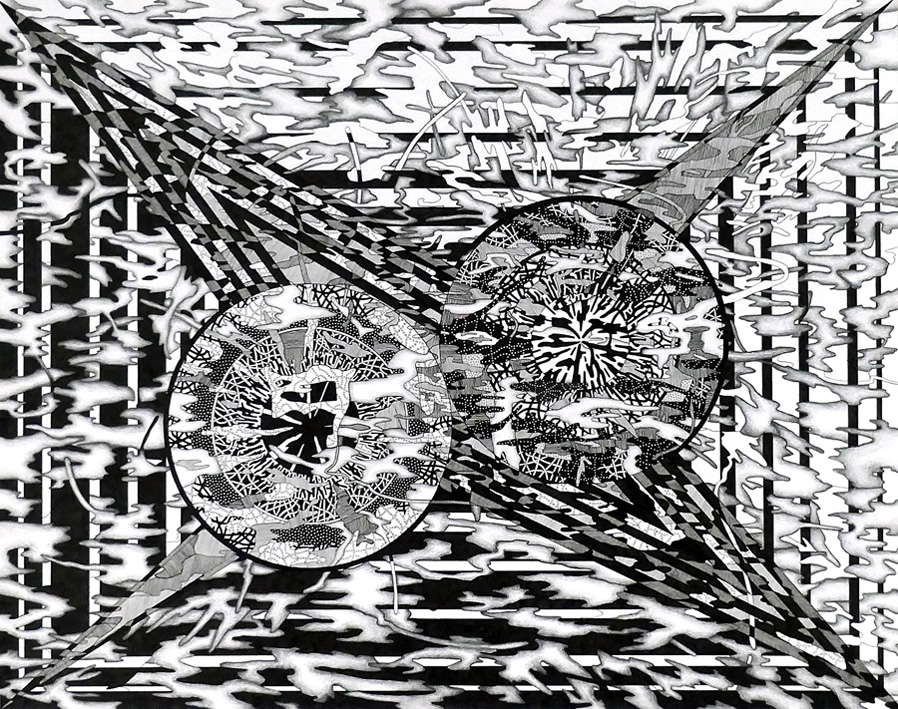 Mazes to the Motherlode LXV-III, Ink and Graphite on Paper, 14" x 17", 2020 |