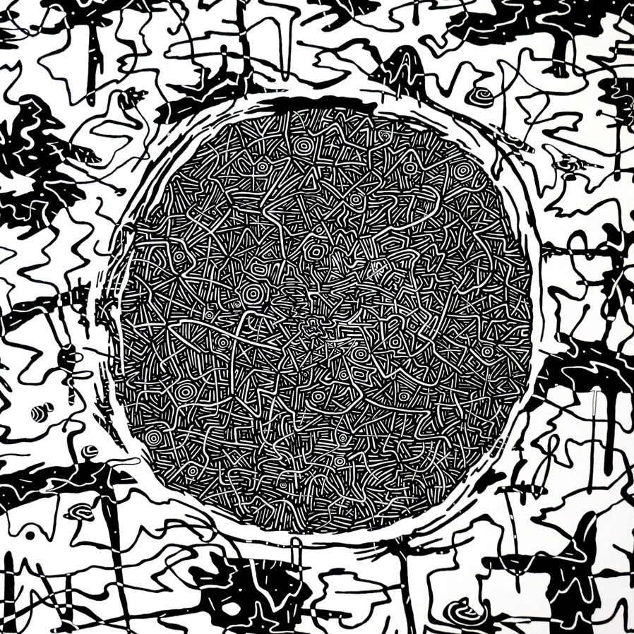 Mazes to the Motherlode LXXIV, Ink on Paper, 12" x 12", 2020 |
