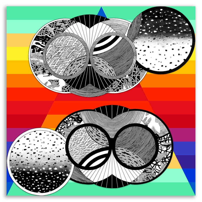 Assemblage Material no. 3, Ink and Colored Pencil on Paper, 11" x 11", 2023 |