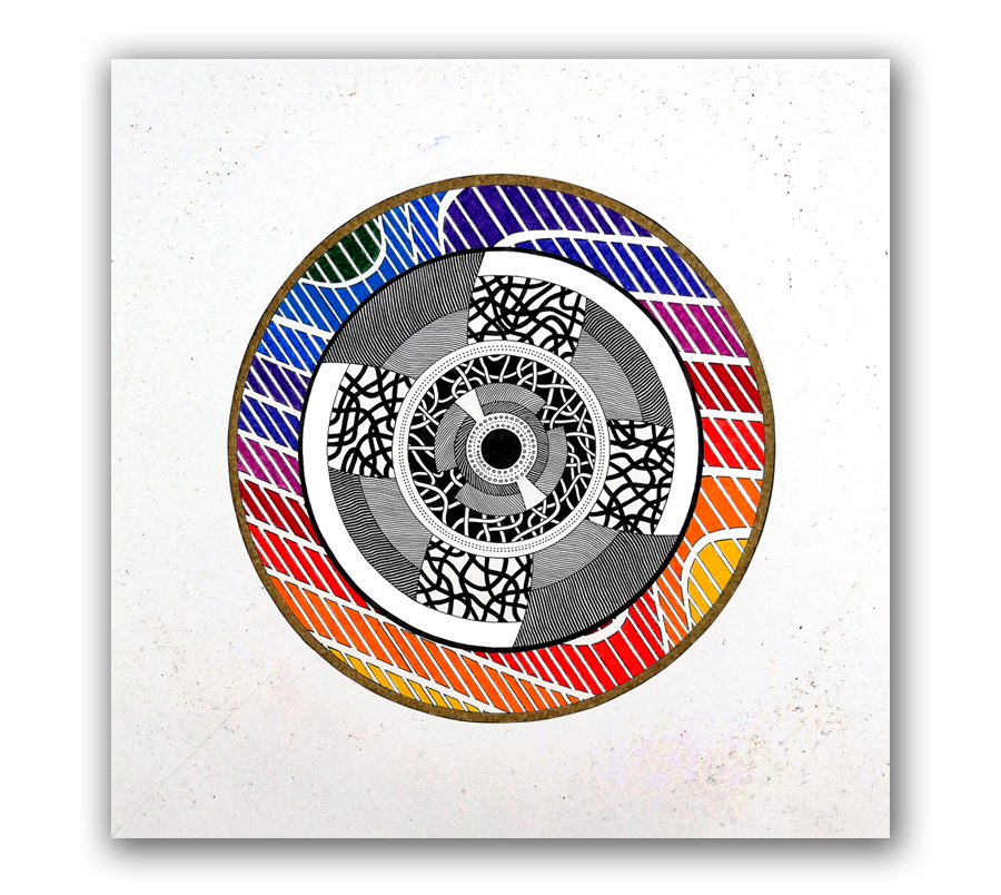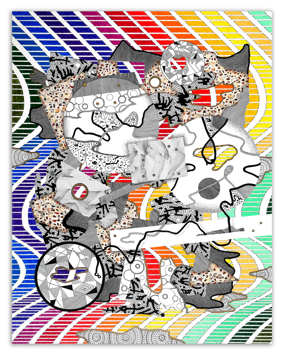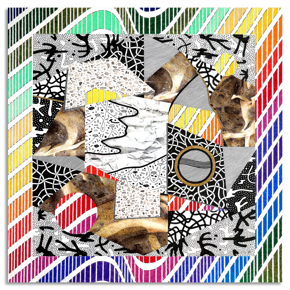 Assemblage Material no. 10, Ink-Graphite and Color-aid on Paper, 14" x 14", 2023 |