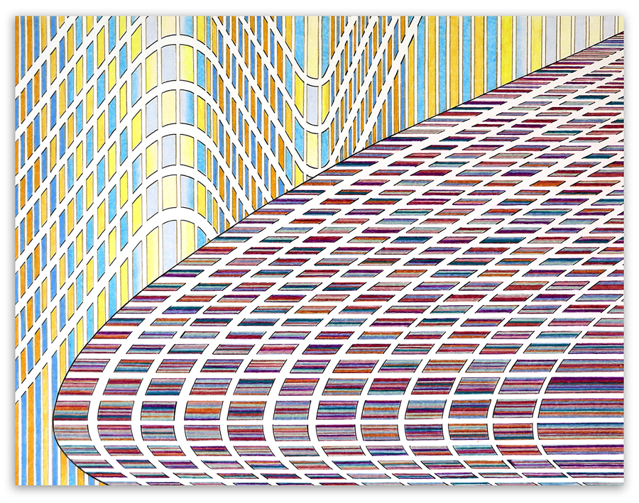 Assemblage Material no. 4.02, Ink and Colored Pencil on Paper, 18" x 18", 2023 |