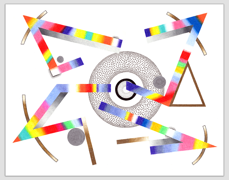 Assemblage Material no. 16.02, Ink and Colored Pencil on Paper, 11" x 14", 2024 |