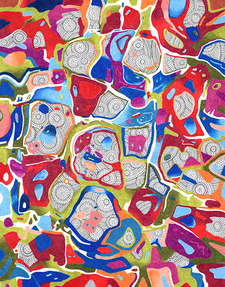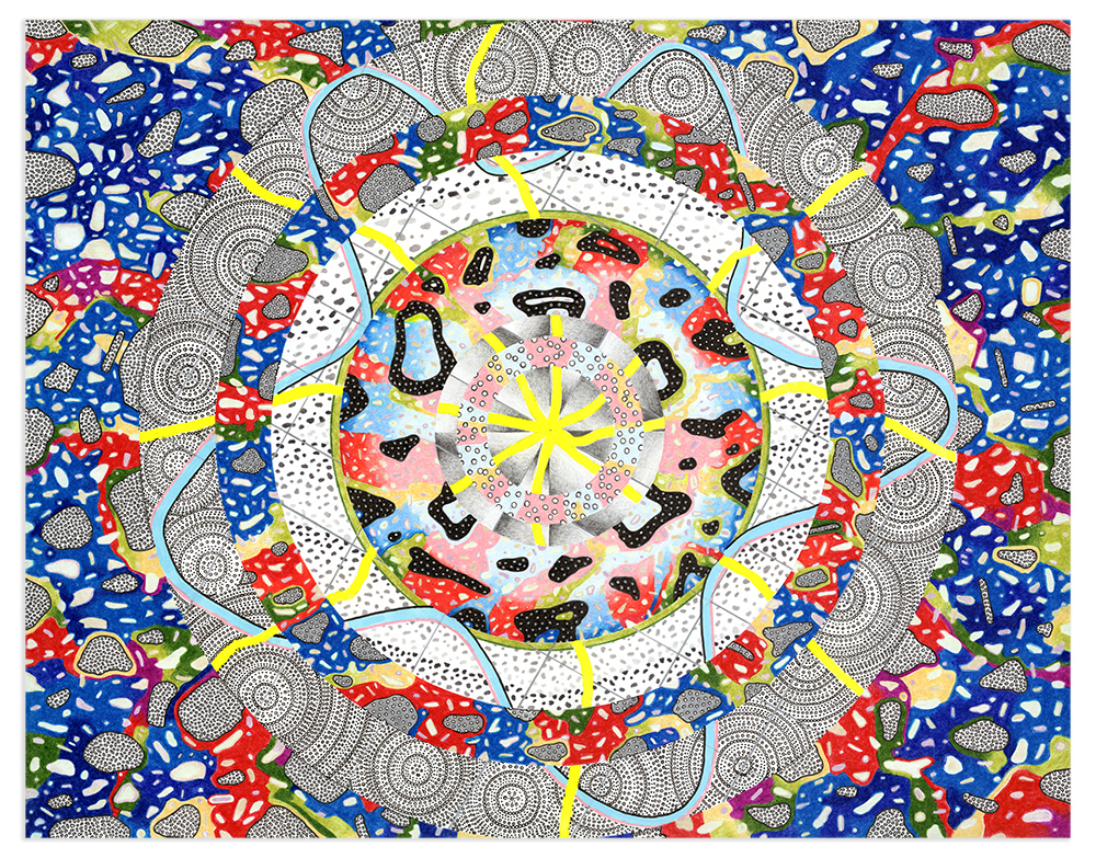 Assemblage Material no. 13, Ink and Colored Pencil on Paper, 11" x 14", 2024 |