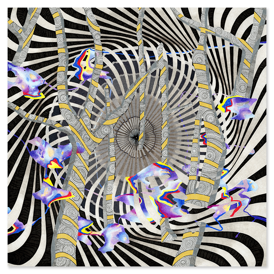 Assemblage Material no. 20, Ink, Gouache, and Colored Pencil on Paper, 9" x 9", 2025 |