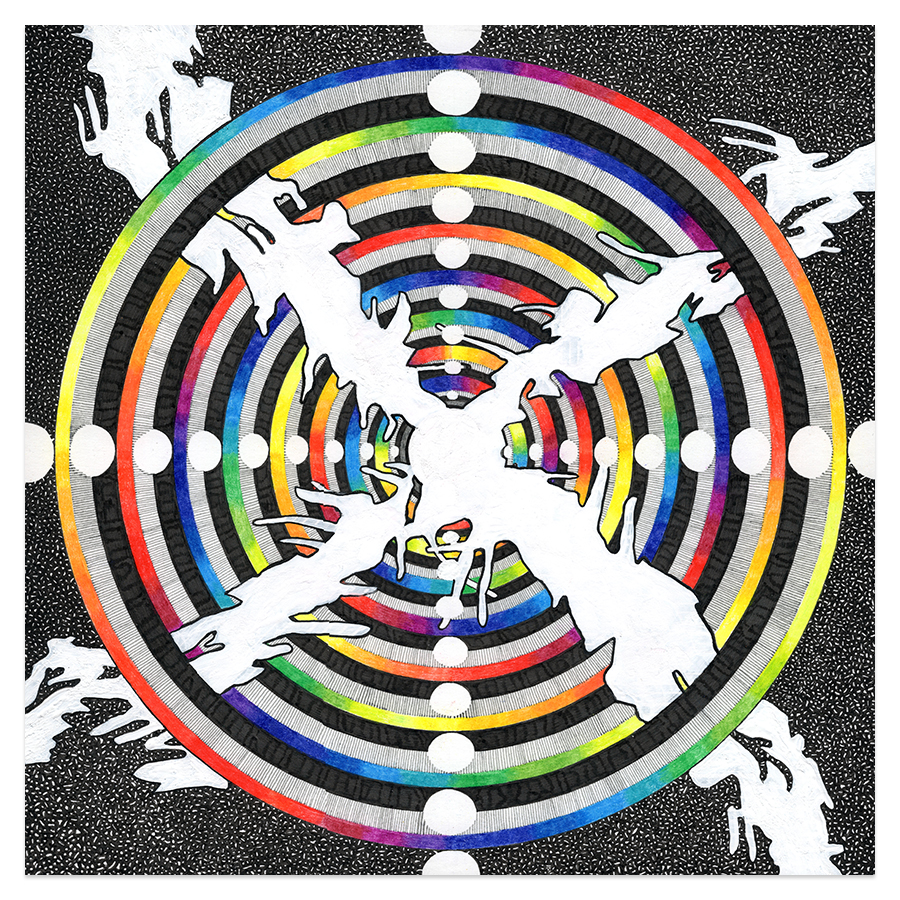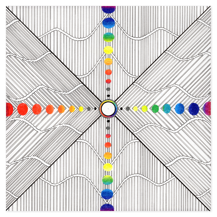 Assemblage Material no. 3.01, Ink and Colored Pencil on Paper, 14" x 14", 2025 |