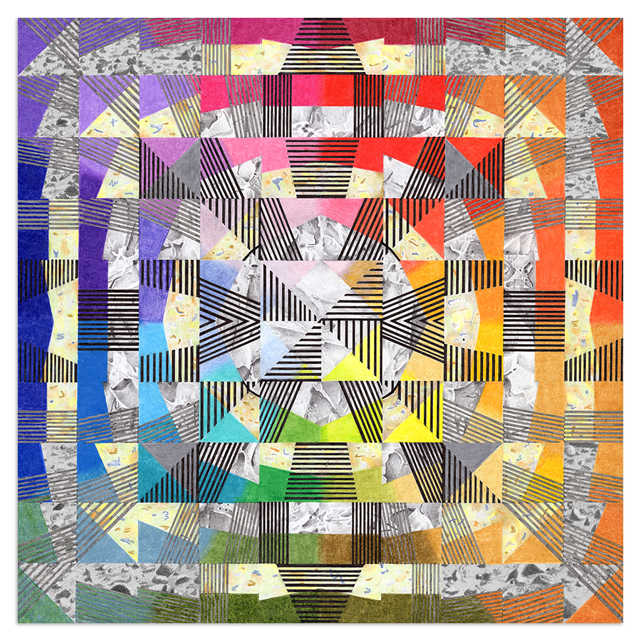 Assemblage Material no. 20.02, Ink-Graphite and Colored Pencil on Paper, 11" x 11", 2025 |
