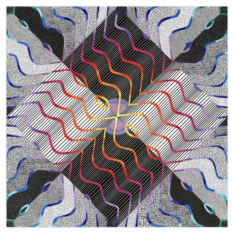 Assemblage Material no. 3.02, Ink and Colored Pencil on Paper, 14" x 14", 2025 |