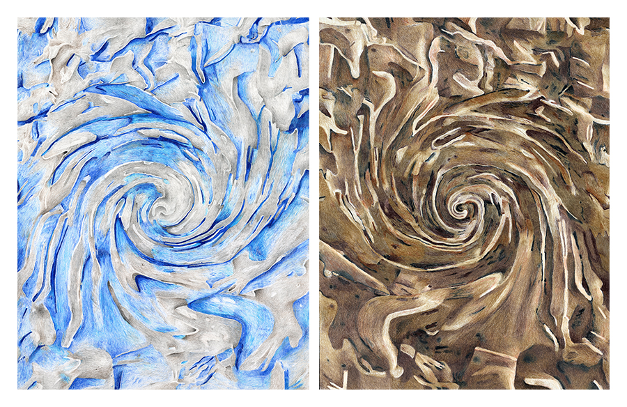 (right) Assemblage Material no. 8.02 (Inverted), Colored Pencil on Paper, 11" x 14", 2024-2025 |