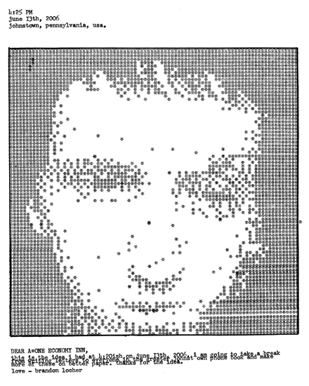 (left) Typewriter Self-Portrait (06/13/06), 8.5" x 11", Typewriter Ink on Paper, 2006 (right) Typewriter Self-Portrait (06/14/06), 8.5" x 11", Typewriter Ink on Paper, 2006 |